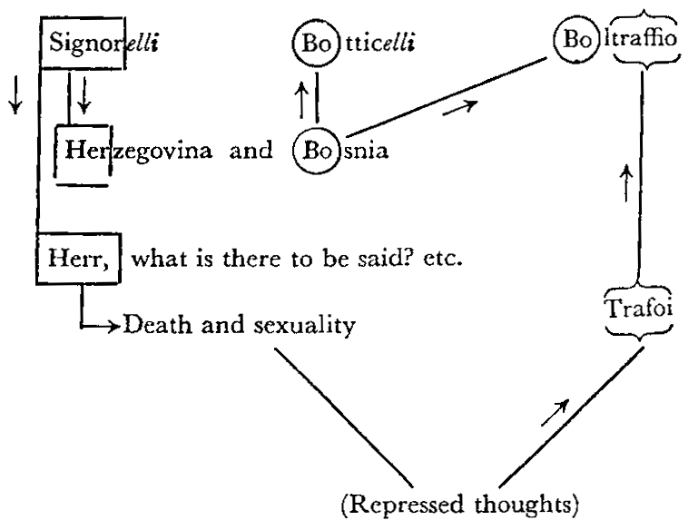 ‘’Az önce konuşmakta olduğumuz konuyu anımsayınca, ismin unutuluşu aydınlandı ve ortaya atılan konunun, bir önceki konu tarafından rahatsız edildiği bir durumun varlığı açığa çıktı. Yol arkadaşıma, Orvirto’da bulunup bulunmadığını sormazdan az önce Bosna’da ve Hersek’te yaşayan Türklerin geleneklerinden konuşuyorduk. Onlara bakan bir hekim arkadaşımdan duyduklarımı anlatmıştım ona; bu insanların doktorlarına çok güvendiğini, yazgıya müthiş bağlı olduklarını aktarmıştım. Bir hasta ile ilgili olarak yapılacak hiçbir şeyin bulunmadığını söylediğinde, yanıtları şöyle olmuş: ‘Ne diyelim, Herr? Kurtarılacak olsaydı, kurtarırdınız, biliyorum.’ Bu tümcelerde ilk kez Signorelli ve Botticelli – Boltraffio ile bir çağrışım dizisine yerleştirilmesi olanaklı olan Bosna, Hersek ve Herr sözcük ve isimleriyle karşılaşıyorduk.’’ (Freud,1901)